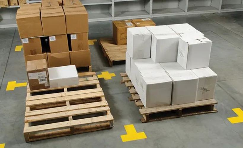 Коробки следует располагать по принципу кирпичной кладки, чтобы создать более устойчивую и прочную конструкцию. Это предотвратит смещение и падение упаковки. Необходимо использовать стандартные европаллеты. Коробки должны плотно складываться на паллету так, чтобы не выступали за ее края. Это позволяет обеспечить безопасность при транспортировке и перемещении вилочным погрузчиком.