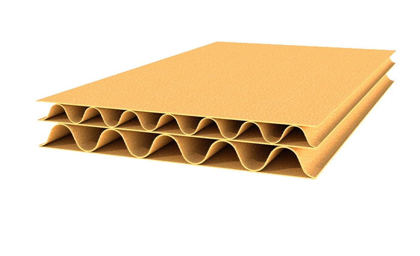 Конструкция гофрированного картона представляет собой поочередное сочетание гладких (лайнеров) и волнистых листов (флютинга), изготовленных из целлюлозного сырья. Пятислойный материал состоит из трех лайнеров, между которыми заключены две прослойки гофрированного флютинга, формирующие воздушную подушку.