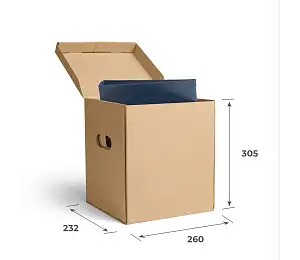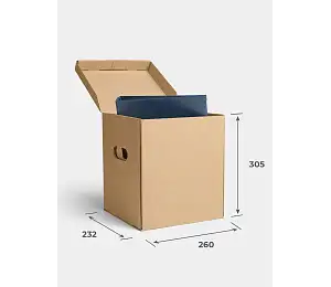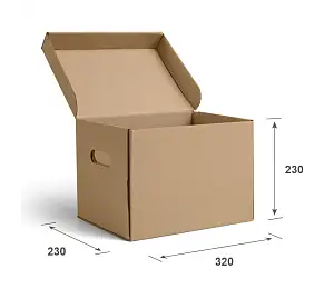 Компания «ГофроМир» более 20 лет изготавливает тару из гофрокартона, в том числе прочные архивные короба для хранения документов. Конструкция таких коробок предполагает наличие откидной крышки и прорезных ручек, дно дополнительно усиливается слоем гофрокартона.