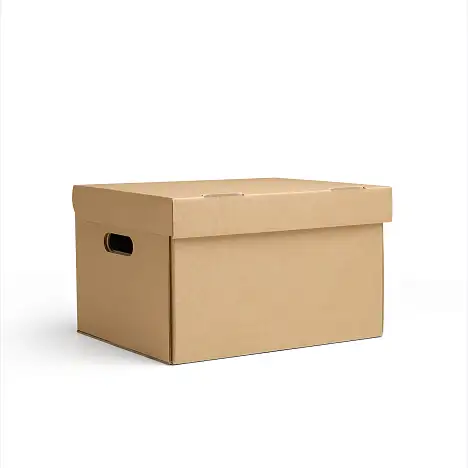 Гофрокороб архивный 380x285x230 с откидной крышкой изготовлен из прочного трехслойного гофрокартона марки Т-24 бурого цвета.