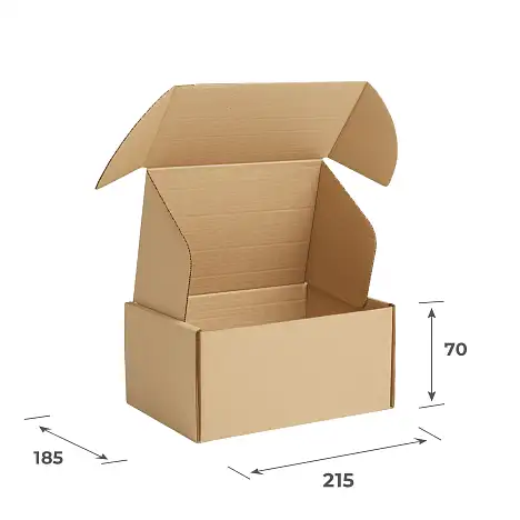 Гофрокороб 215х185х70 самосборный с усиленными торцевыми стенками и откидной крышкой. Универсальная самосборная конструкция коробки легко собирается по заранее вырубленным в процессе производства биговкам.
