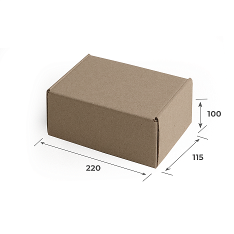 Гофрокороб самосборный 220х115х100 изготовлен из трехслойного бурого микрогофрокартона марки T-23. При необходимости, для клиентов данный короб можем изготовить и в белом цвете.