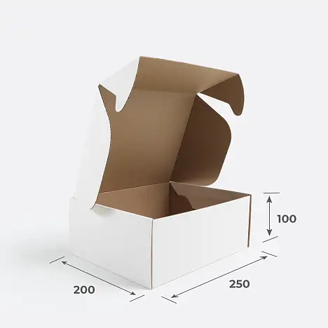 Картонная коробка 250х200х100 Т23 E Белый 0427 (с усечёнными клапанами)