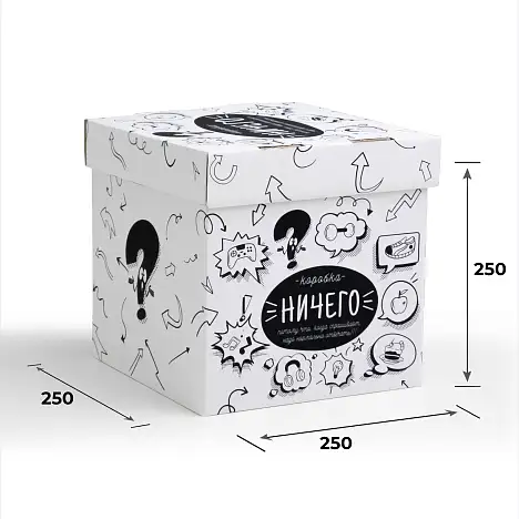 Гофрокороб крышка-дно 250х250х250 изготовлен из трехслойного гофрокатона белого цвета. На изделия нанесена цифровая печать. Модель «крышка-дно», где крышка по каталогу FEFCO 0422, а дно - 0216, очень легкая, компактная и не занимает много места.