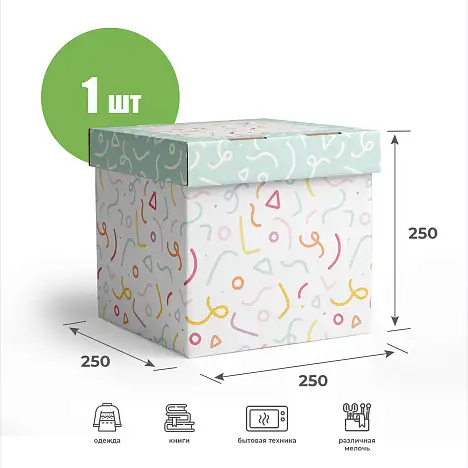 Крышка для картонной коробки 258х258х50 Т23 B 0422 Конфетти