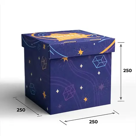 Гофрокороб крышка-дно 250х250х250 изготовлен из трехслойного гофрокатона. На изделия нанесена цифровая печать. Модель «крышка-дно», где крышка по каталогу FEFCO 0422, а дно - 0216, очень легкая, компактная и не занимает много места.