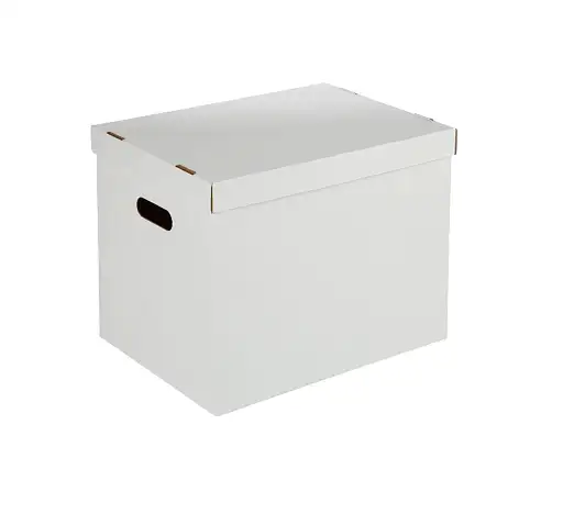 Гофрокороб архивный 260х232х305 с откидной крышкой изготовлен из прочного трехслойного гофрокартона марки Т-23 белого цвета. Существует большое количество разнообразных размеров архивных коробок (конструкция FEFCO 0470), которые предназначены для упаковки документов. Например, бокс 260х232х305 очень удобно использовать для сортировки и упаковки папок размера А4. При необходимости, на него можно нанести одноцветную печать или логотип компании. Такой короб выдерживает до 25 кг.