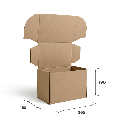 Гофрокороб почтовый самосборный Г (эконом) - 265х165х190 изготовлен из трехслойного гофрокартона бурого цвета марки Т-24.
