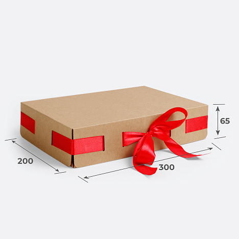 Коробка подарочная 300х200х65 Т23 E Бурый 0999 Красная лента (в комплект не входит)