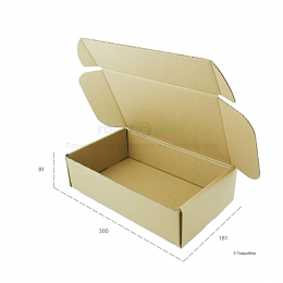 Самосборный гофрокороб 300х250х130 изготовлен из микрогофрокартона марки Т-11 профиля Е. Он прочный и легко собирается по отмеченным биговкам. Его можно использовать для любые цели: транспортировки, упаковки товаров, хранения вещей и мелких товаров.