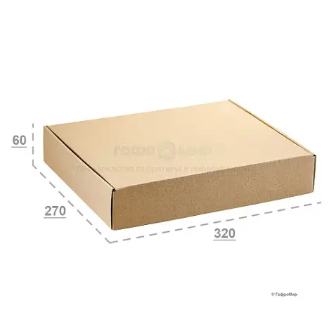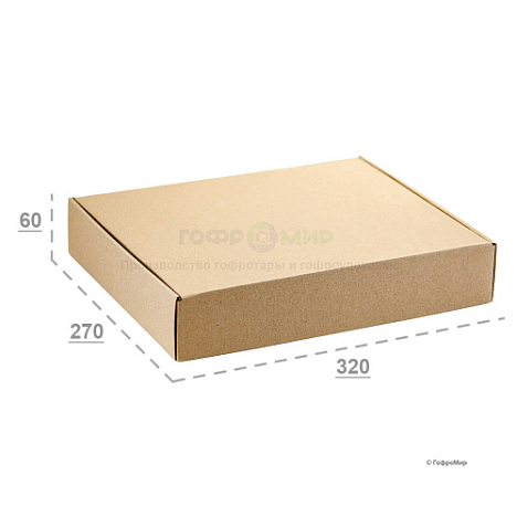 Самосборный гофрокороб 320х270х60 изготовлен из микрогофрокартона марки Т-11 профиля Е. Он прочный и легко собирается по отмеченным биговкам. Его можно использовать для любые цели: транспортировки, упаковки товаров, хранения вещей и мелких товаров.