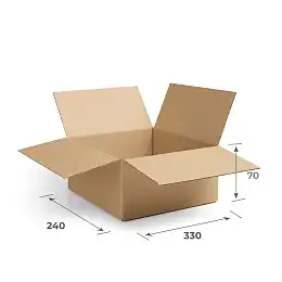Гофрокороб 330х230х100 изготовлен из микрогофрокартона марки Т-11. Конструкция FEFCO 0427 очень простая не требует клея, скотча или каких-либо других дополнительных материалов. Заготовки для таких упаковок делаются при помощи штанцформ.