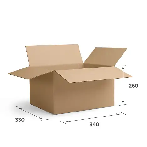 Универсальные коробки из гофрокартона размером 340х330х260 часто используют для переезда, хранения документов и вещей.