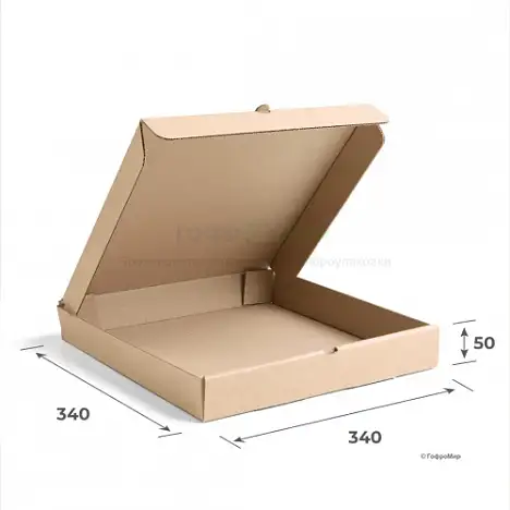 Коробка для пирогов 340x340x50 изготовлена из трехслойного гофрокартона марки Т-23 модель FEFCO 0426. Данный короб доступен в двух цветах: буром и белом. На сегодняшний день гофрокороб самая популярная тара и отличный вариант для упаковки пищевой продукции, например, пиццы, пирогов и сладостей. Коробки из гофрокартона полностью экологичны и хорошо сохраняют необходимый температурный режим. К тому же, такие коробки можно сделать уникальными благодаря современным технологиям флексопечати, созданием яркого дизайна.