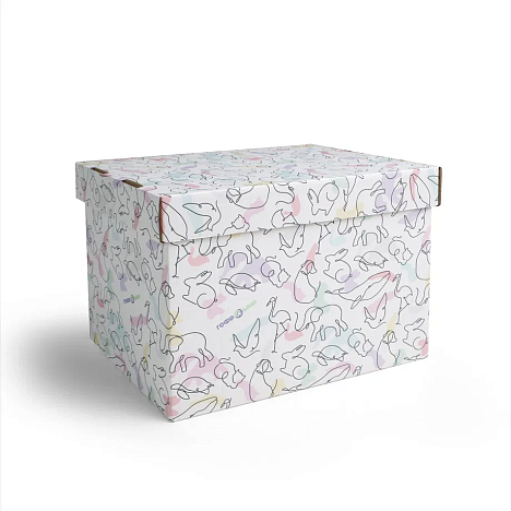 Крышка для картонной коробки 358х258х50 Т24 B Белый 0422 Животные