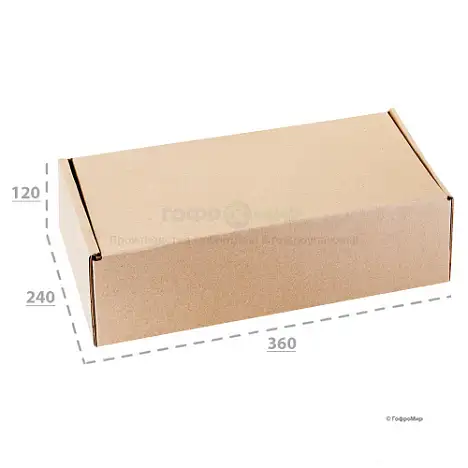 Самосборный гофрокороб 360х240х120 изготовлен из трехслойного гофрокартона марки Т-23 профиля В. Он прочный и легко собирается по отмеченным биговкам. Его можно использовать для любые цели: транспортировки, упаковки товаров, хранения вещей и мелких товаров.