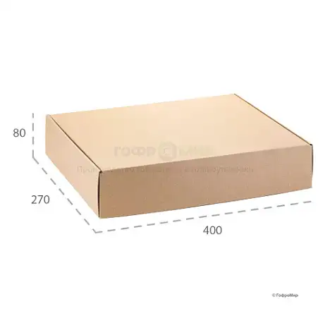 Гофрокороб самосборный 400x270x80, который вы можете приобрести на сайте, очень легкий и простой в сборке. Выполнен из микрогофрокартона марки Т-11 бурого цвета. Такие короба часто используются для продажи различных товаров оптом и в розницу, а также для транспортировки хрупкой продукции. При необходимости мы можем изготовить и ложементы для дополнительной фиксации, то удобная складная конструкция FEFCО 0427 позволяет использовать его многократно как тару для хранения мелких вещей.