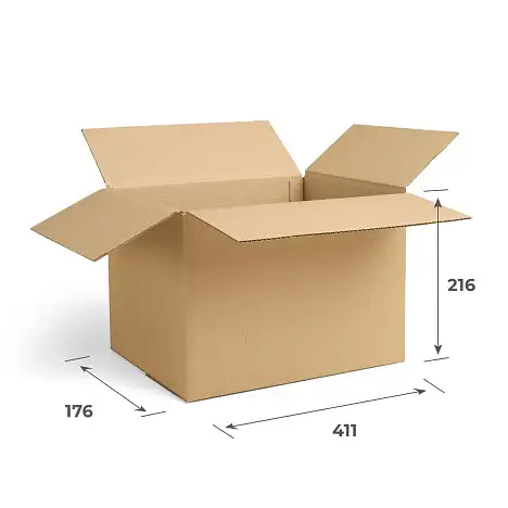 Гофрокороб 4-клапанный 411х176х216 Т-22 В бурый. Небольшая коробка бурого цвета из пятислойного гофрированного картона. Эта прочная упаковка отлично подходит для упаковки товаров, которым требуется усиленная защита.