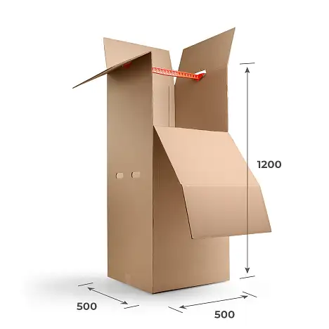 Удобный гардеробный короб упаковка подойдет для хранения вещей, переезда и транспортировки товаров. Коробка приходит в виде заготовки, которая быстро складывается и склеивается скотчем. Это надежная и удобная тара.