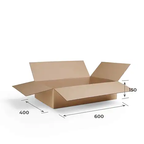 Гофрокороб 4-х клапанный 600х400х150 изготовлен из трехслойного гофрокартона марки Т-23 бурого цвета.