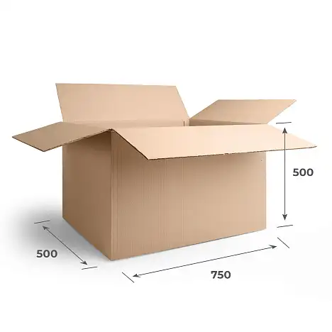 Картонная коробка 750х500х500 производится из прочного 5-ти слойного гофрокартона П-32 в буром цвете. Данный материал отличается экологичностью и не вреден для окружающей среды.
