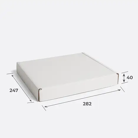 Простой самосборный гофрокороб 282х247х40 конструкции FEFCO 0427. Мы изготавливаем картонные коробки как бурого, так и белого цвета.