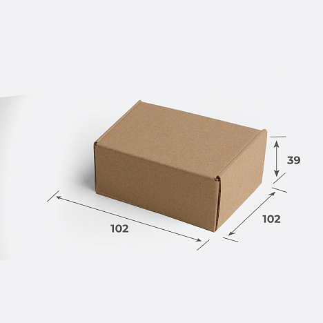 Гофрокороб 102х102х39 самосборный с усиленными торцевыми стенками и откидной крышкой. Универсальная самосборная конструкция коробки легко собирается по заранее вырубленным в процессе производства биговкам.