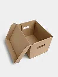 Гофрокороб 270х215х78 самосборный с усиленными торцевыми стенками и откидной крышкой. Универсальная самосборная конструкция коробки легко собирается по заранее вырубленным в процессе производства биговкам.