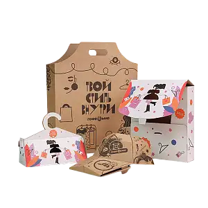 По конструкции больше всего подходят изделия «крышка-дно» или модели с откидной крышкой. В качестве внешнего декора используют флексопечать, каширование, нанесение ламинирующего или крафтового слоя.