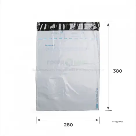 Курьерский пакет изготовлен из 5-слойной пленки, белой снаружи, черной внутри, надежно скрывающий содержимое, стойкий к проколам, влаге и температурным перепадам.