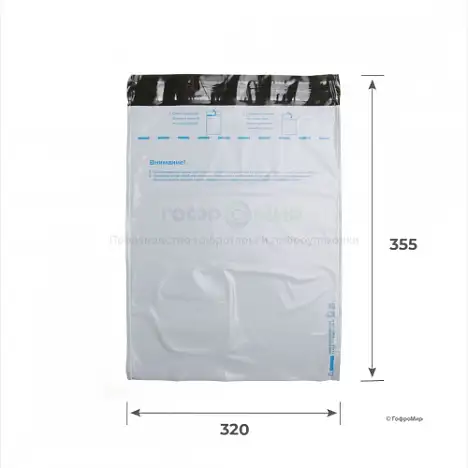Курьерский пакет изготовлен из 5-слойной пленки, белой снаружи, черной внутри, надежно скрывающий содержимое, стойкий к проколам, влаге и температурным перепадам.