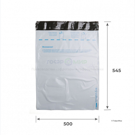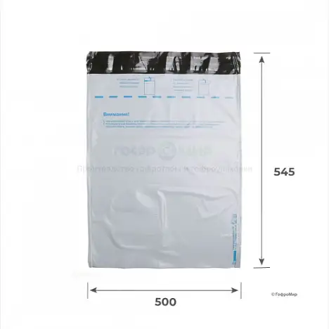 Курьерский пакет изготовлен из 5-слойной пленки, белой снаружи, черной внутри, надежно скрывающий содержимое, стойкий к проколам, влаге и температурным перепадам.