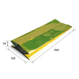 Металлизированный золотого цвета предназначается для упаковки различных сыпучих продуктов, например. Чаще всего используется для фасовки чая или кофе. Фольгированный слой обеспечивает герметичность и влагостойкость упаковки.