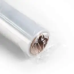 - Удобство применения. Пленка многократно растягивается и сжимается, просто оборачивается вокруг продуктов и легко отрывается, что важно для удобного применения.