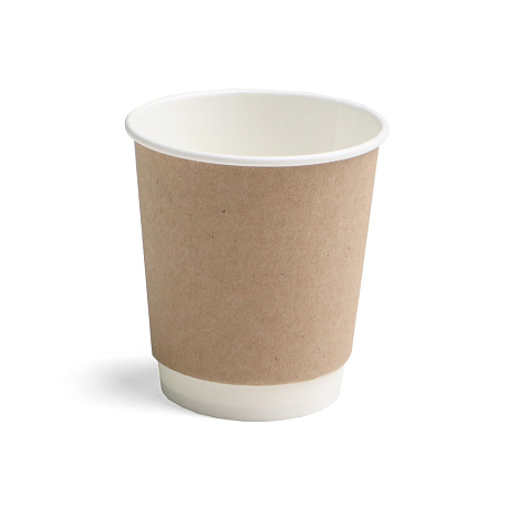 Крафт стакан изготовлен из бумаги и обладает матовой поверхностью. Подходит для холодных и горячих напитков. При воздействии высоких температур не выделяет вредных веществ.