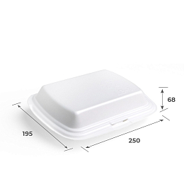 Ланчбокс из вспененного полистирола предназначен для одноразовой упаковки пищевой продукции. Обладает замком, который обеспечивает полное прилегание крышки и дна друг к другу. При взаимодействии с горячей едой не выделяет вредных веществ и является безопасным.
